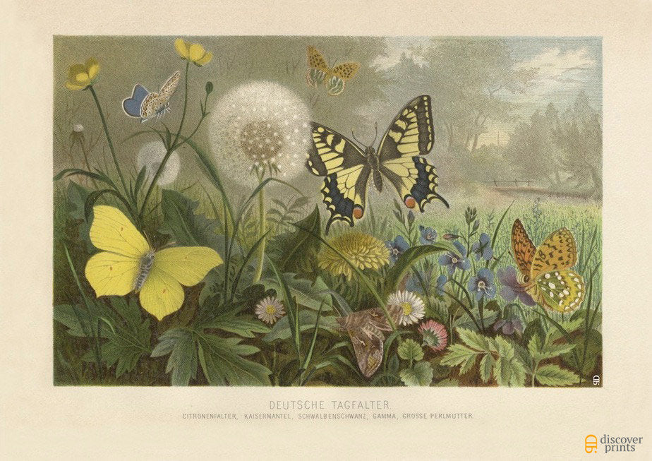 Why bother with boxes, pins, and unnecessarily-dead insects when you can appreciate these beauties as in their natural habitat with this antique art print of an original lithograph? Excite the inner entomologist within while you investigate their bold, vivid colors and patterns in museum-quality inks and paper, matching their exotic latin names with the convenient numbering system.