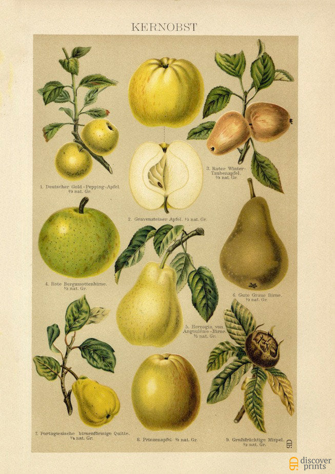 Do you have a fruit-cake in your family? Do you want to stop a loved one from going bananas? Is your child the apple of your eye? Stop using useless puns and just show them with this Antique Style art print of this forbidden fruit rendered and beautifully colored among many of the heritage varieties. Would make an equally thoughtful gift for botanists, cooks, and those trying to get more fiber in their diet.