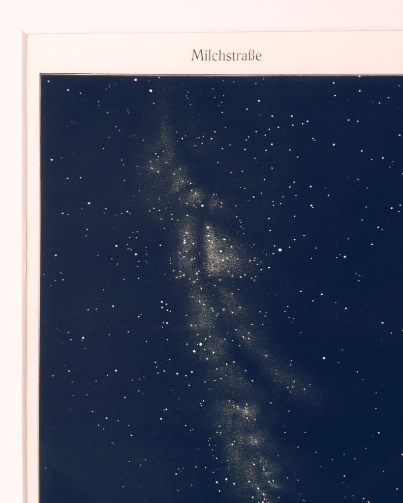 Our ancestors spent their nights looking into the deep night sky and imagining stories about gods and men drawn in the stars; not binge-watching 90s sitcoms online. Turn off your computer and learn how to identify the constellations of the Northern Hemisphere with this gorgeous print. Deep blue with stars shown in pale yellow, and information in German.