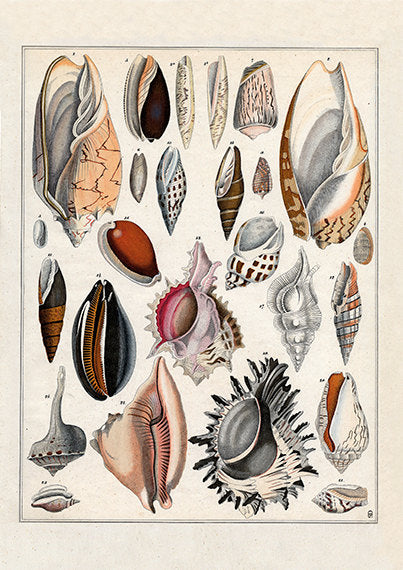 If you’ve ever had a mother, there’s at least a 75% chance you grew up with a pile of sandy broken shells somewhere in the house. Help mom get rid of her clutter with this beautifully-rendered archival print of mollusk shells.
