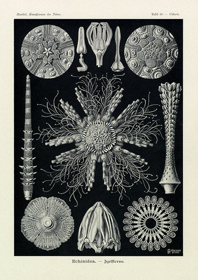 This is one of my best-selling prints: a gorgeous reproduction from my original "Art Forms in Nature,” over 100 years old. This was originally created between 1899-1905 by the incredibly prolific and sought-after biologist, naturalist, philosopher, physician, professor and artist Ernst Haeckel. Known for his brilliant coloration and artistic and near-hallucinogenic style, he was a master of marrying art and science in a way that is still unrivalled today. This work has had a great influence on Art Nouveau, also through René Binet's "Esquisses décoratives," inspired by Haeckel.