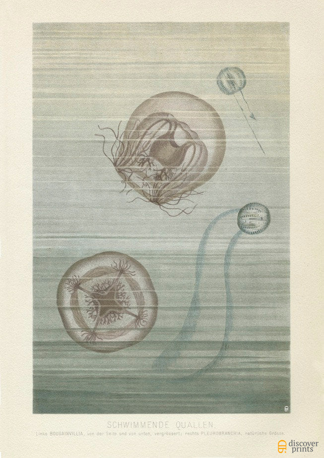 Did you know that group of jellyfish is called a smack? That jellyfish predate the dinosaurs? This subdued print shows a number of different types of both of these nifty sea creatures. Sure to please the marine biologist in your life.
