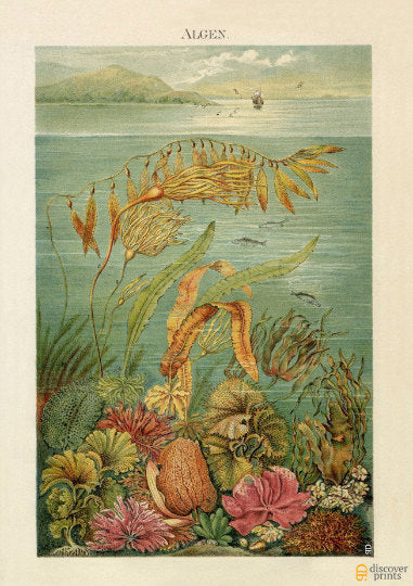 Next time you’re wading in the North Atlantic ocean, trying to force blood into your numb lower extremities, just think of the antique botanical art print of these friendly technicolor seaweeds before screeching not-unlike a preteen ballerina at your sheer terror at the touch of a gentle, slimy tentacle wrapping around your ankle.