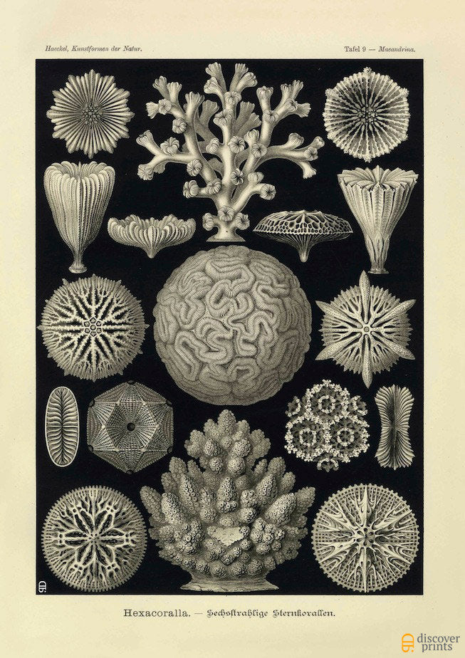 This is one of my best-selling prints: a gorgeous reproduction from my original "Art Forms in Nature,” over 100 years old. This was originally created between 1899-1905 by the incredibly prolific and sought-after biologist, naturalist, philosopher, physician, professor and artist Ernst Haeckel. Known for his brilliant coloration and artistic and near-hallucinogenic style, he was a master of marrying art and science in a way that is still unrivalled today. This work has had a great influence on Art Nouveau, also through René Binet's "Esquisses décoratives," inspired by Haeckel.