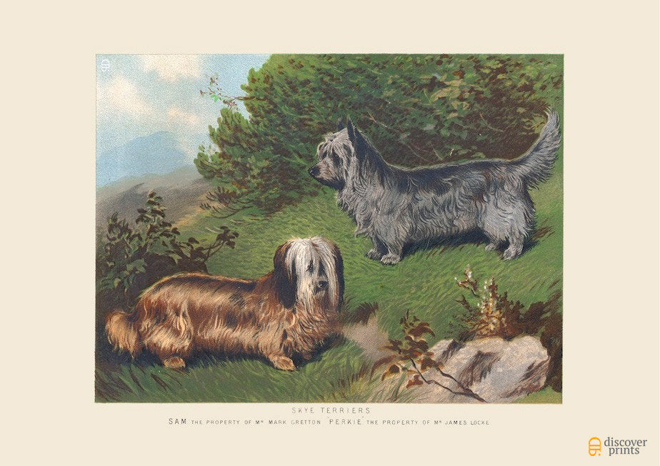 Check out this stately lithograph giclée! This sweet pair of Skye Terriers, Sam and Perkie, are drawn exploring the English countryside on a sunny day. Did you know that Skye Terriers are considered an endangered breed? Lovely gift for the veterinarian or dog lover in your life. Please spay or neuter your real dogs, and consider adoption before buying from a breeder!