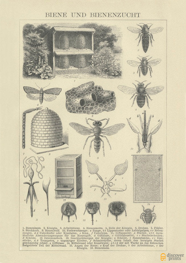 Beekeeping Art Print - Vintage Botanical Illustration - Antique Wall Art - Museum Quality