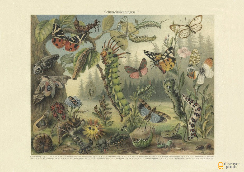 This wonderful print shows a number of different types of insect defense mechanisms, from poisonous spikes, to playing dead, to showing bright scary camouflage, it’s as if these bugs borrowed from my playbook about how to avoid conversations with people I don’t want to talk to. This lovely print makes a lovely gift for a wedding, babyshower, birthday, or to commemorate a special event. Perfect for the entomologist in your life.