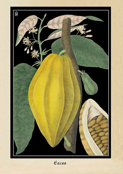 Chocolate Botanical Print - Vintage Cocao Botanical Poster - Antique Style Kitchen Wall Art - Museum Quality